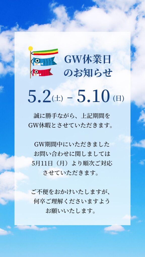 5/2(土)〜5/10(日)までお休みをいただきます。